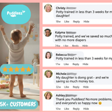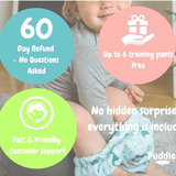 • One smart investment → You buy once, and PuddleezÂź are designed to help your child graduate out of diapers completely.