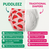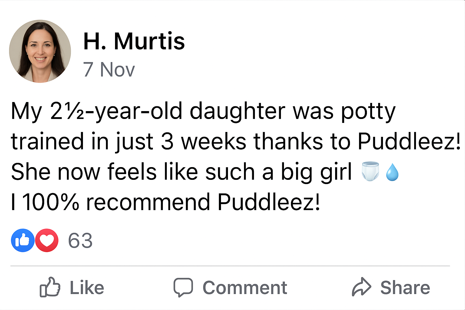 Unlike disposables that drag the process out for months, Puddleez¼ creates the right conditions for learning from day one. You’re not just waiting and hoping — you’re actively helping your child build the skills to succeed.
